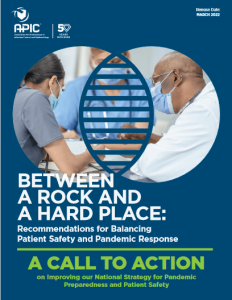BETWEEN A ROCK AND A HARD PLACE: Recommendations for Balancing Patient Safety and Pandemic Response explores the lessons infection preventionists have learned during their fight against COVID-19. Written by APIC’s COVID-19 Task Force, this paper highlights actions that must be taken at the healthcare facility level to strengthen infection prevention and control programs nationwide, and at the government level to make sure our nation has the infection prevention capacity to handle future pandemics.