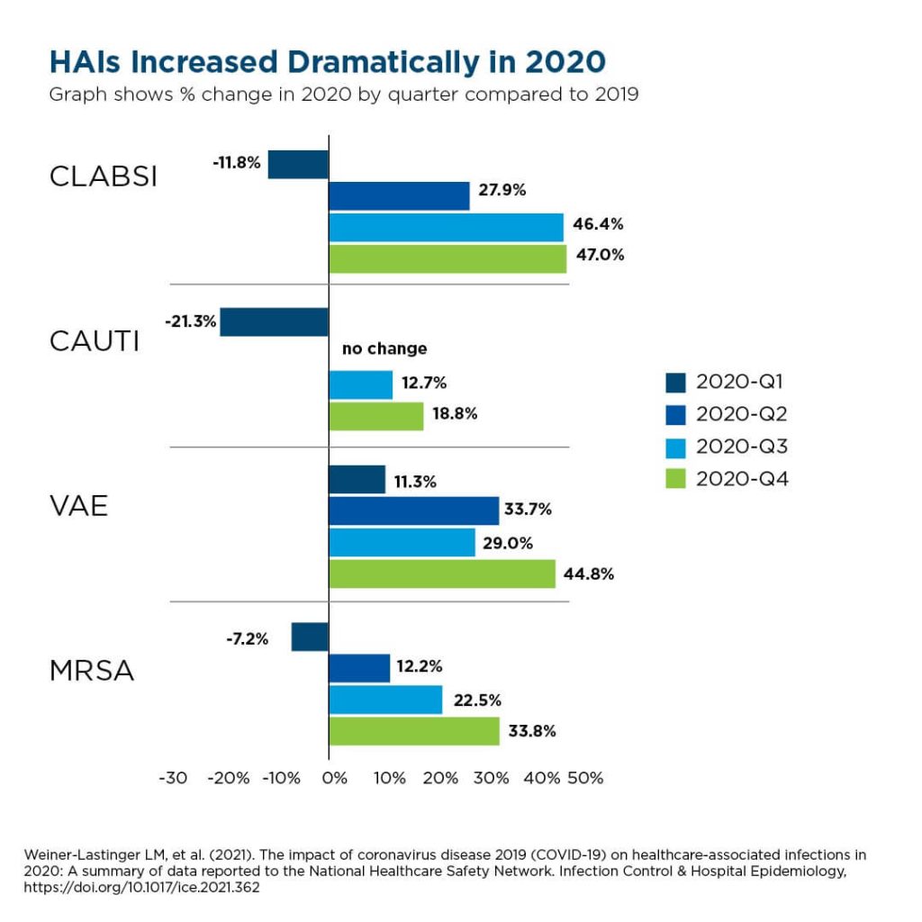 Arlington, Va., September 2, 2021 – “The new data from the Centers for Disease Control and Prevention showing dramatic increases in healthcare-associated infections (HAIs) during 2020, the first year of the COVID-19 pandemic, are quite troubling and must serve as a call to action. As a nation we must take significant efforts to bolster our infection prevention and control programs throughout the healthcare continuum.